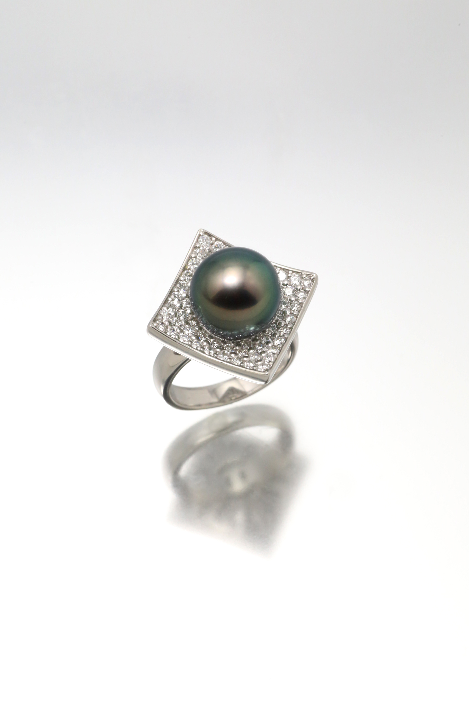 PT 黒蝶真珠リング (ラグーン鑑別書付き) 11.8mm 1.30ct